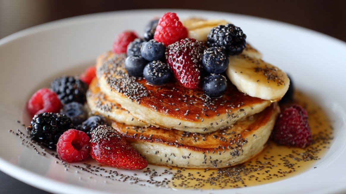 Sprinkling chia seeds over breakfast foods like pancakes adds a subtle crunch along with extra fiber and healthy fats