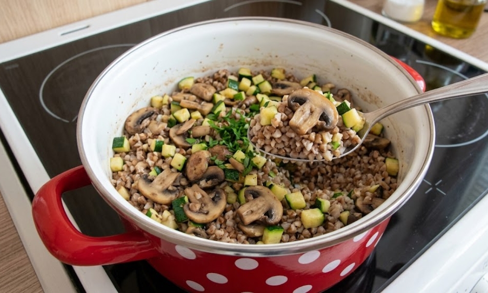 Recept 5: Kuvana heljda sa pečurkama i tikvicama
