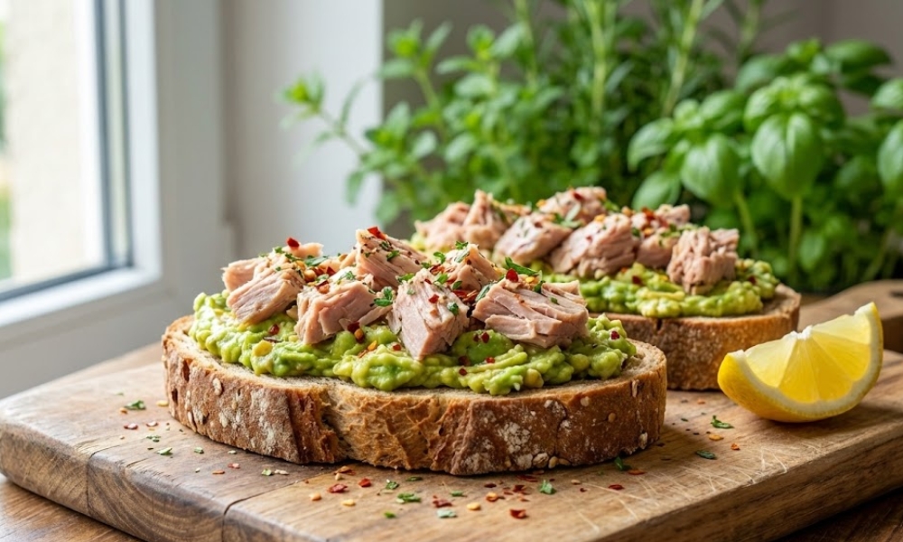 Izgnječite pola zrelog avokada viljuškom, dodajte konzervu tunjevine (u sopstvenom soku) i malo limunovog soka.